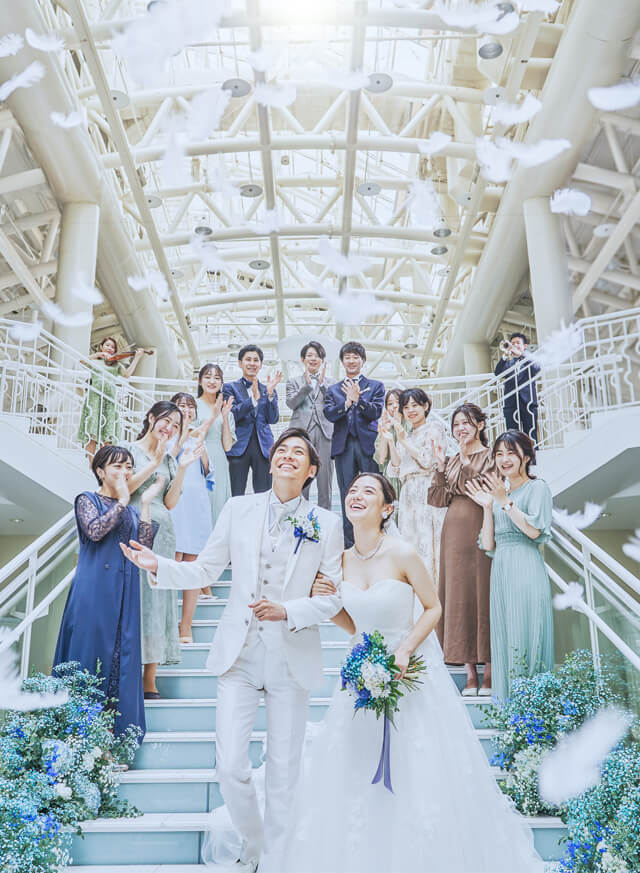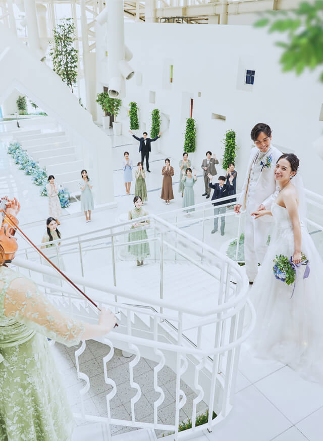広々とした館内でのプライベートな貸切感を味わいながら大切なゲストと過ごす心に残る一日。たくさんのゲストと過ごすパーティーから少人数で楽しむファミリーウエディングも、様々なウエディングスタイルをご提案。
