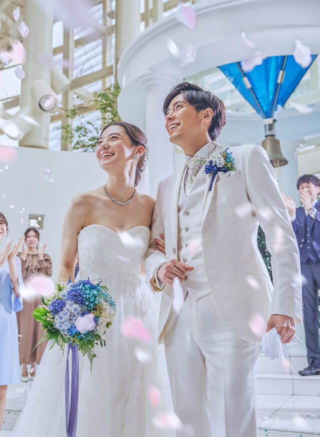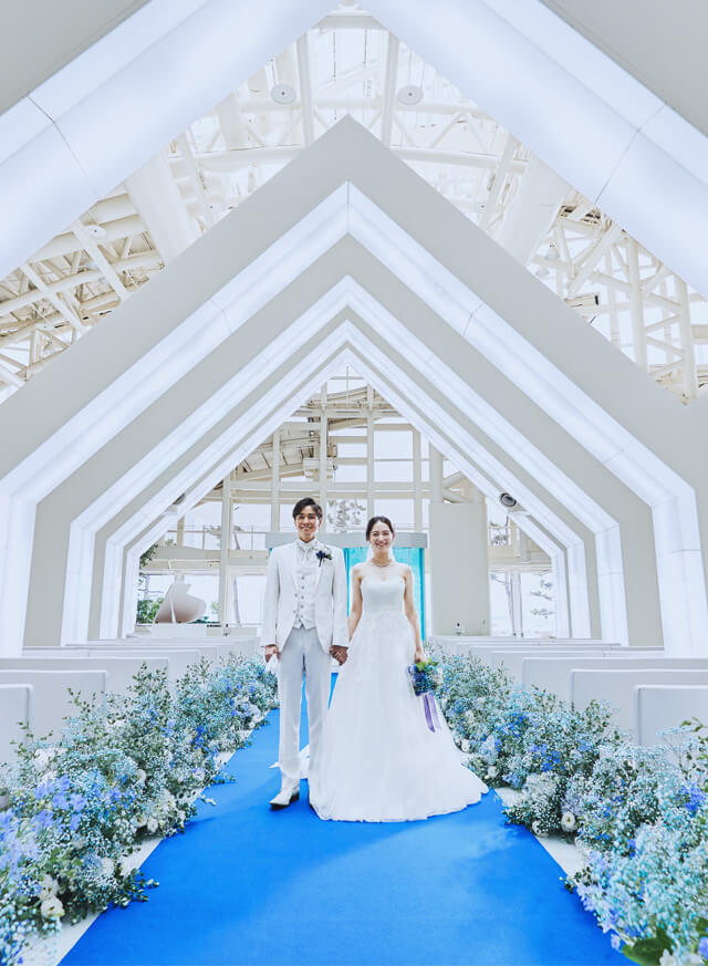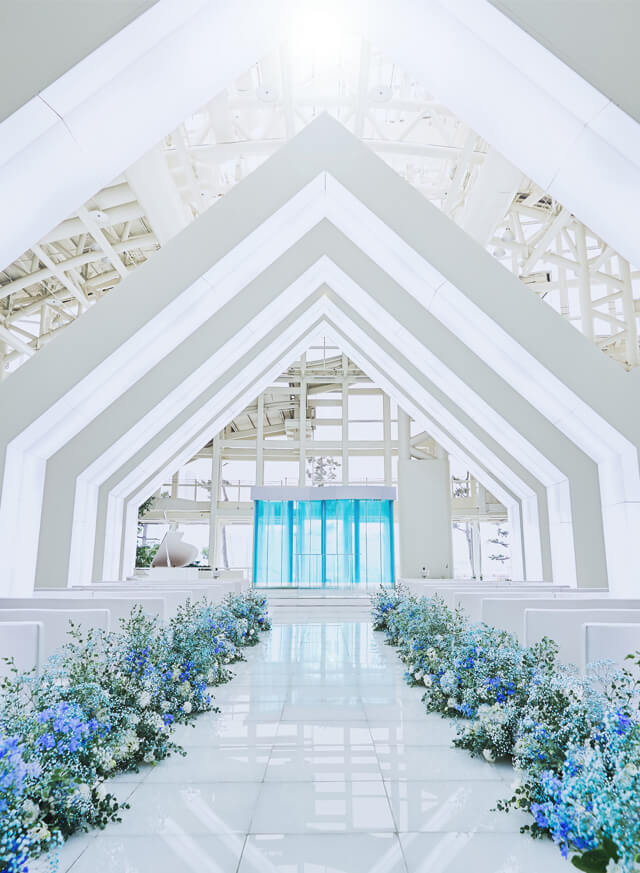 これまでとこれからがつながるやさしい光に包まれる純白のチャペルで心を結ぶ誓いの瞬間を。