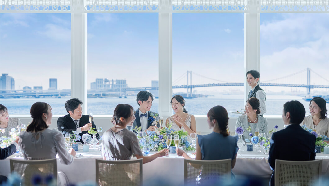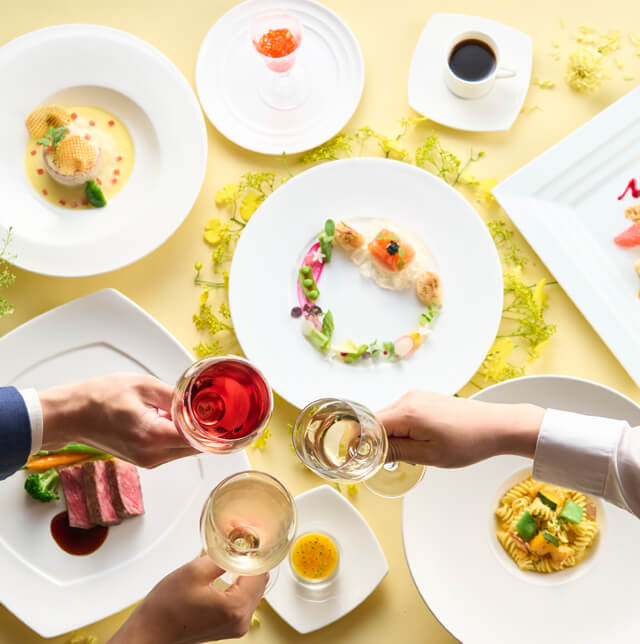 海を望み非日常の空間で味わう、彩り豊かなフレンチ。季節の食材を使った繊細な一皿一皿が、特別な一日を美味しく彩ります。大切なゲストの笑顔を引き出す心を込めたおもてなしを。